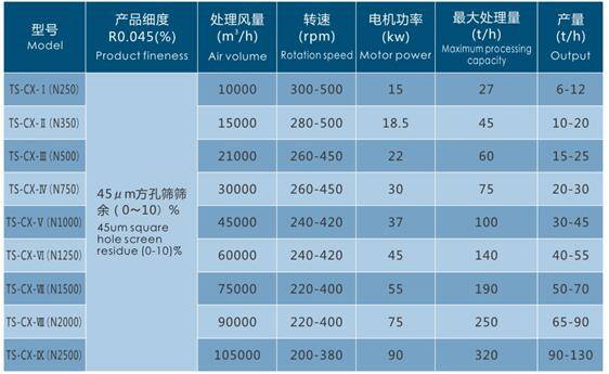 151959771961. T-Sepax high-efficiency three-phase separator adopts two-stage separation and three-stage dispersion, which can collect coarse particles from mixed powder into coarse powder cones in the first-stage classification area of coarse powder (d > 150um), medium-coarse powder (60um < d < 150um) and fine powder. The guide vane and the straight cage rotor are completed in the annular area. Because the coarse particles are pre-separated and the interference of coarse particles is eliminated, the classification accuracy is high and the separation efficiency is over 85%.